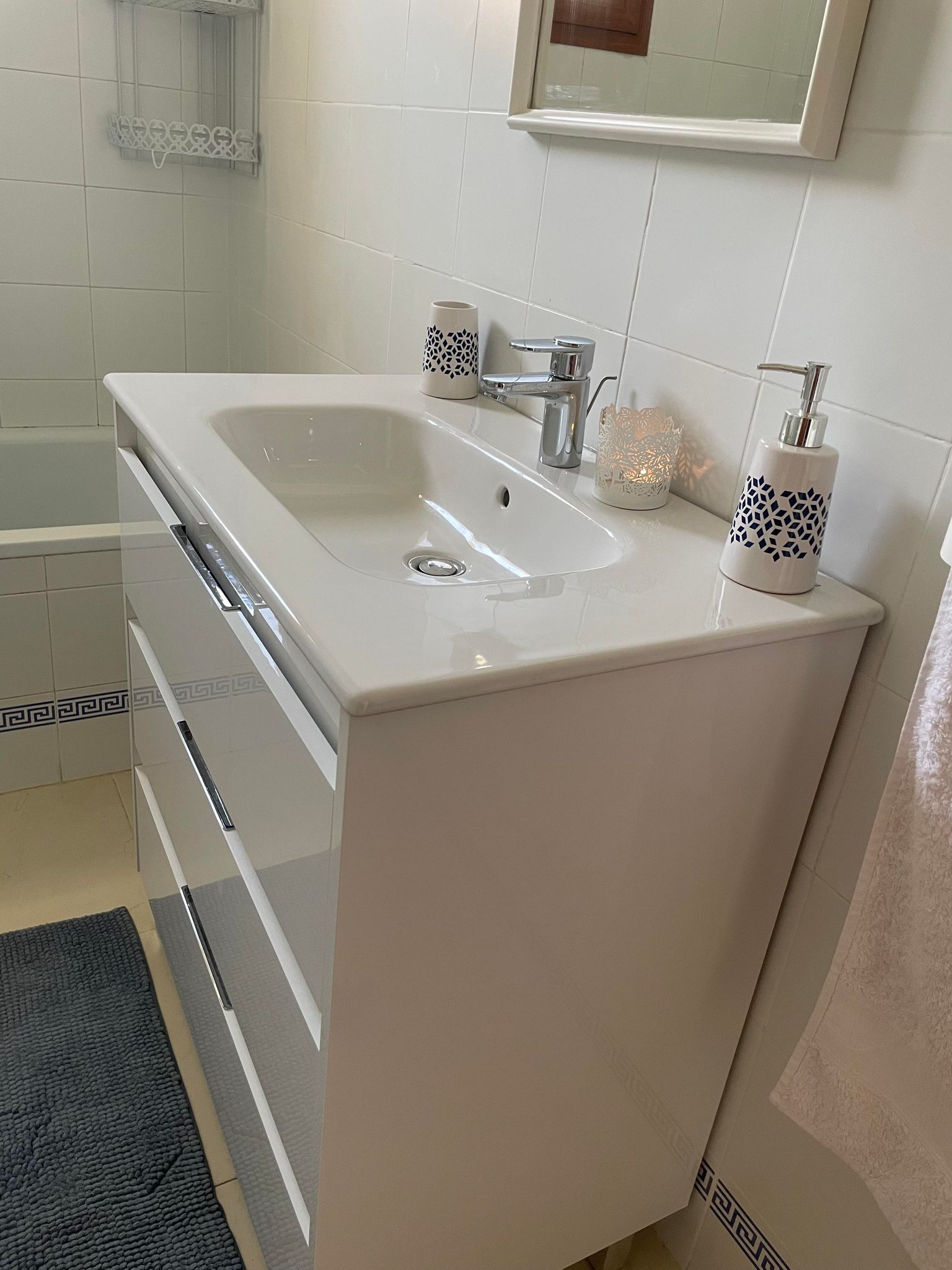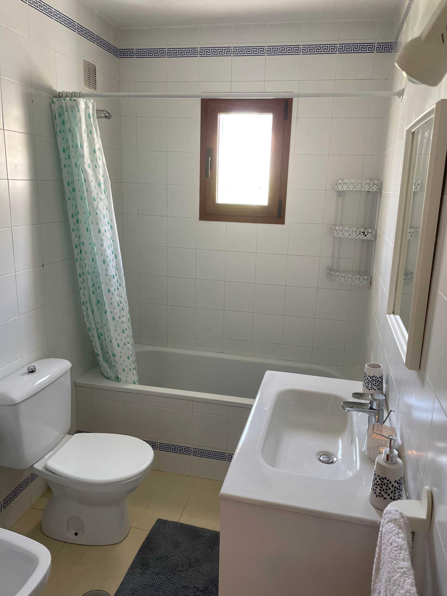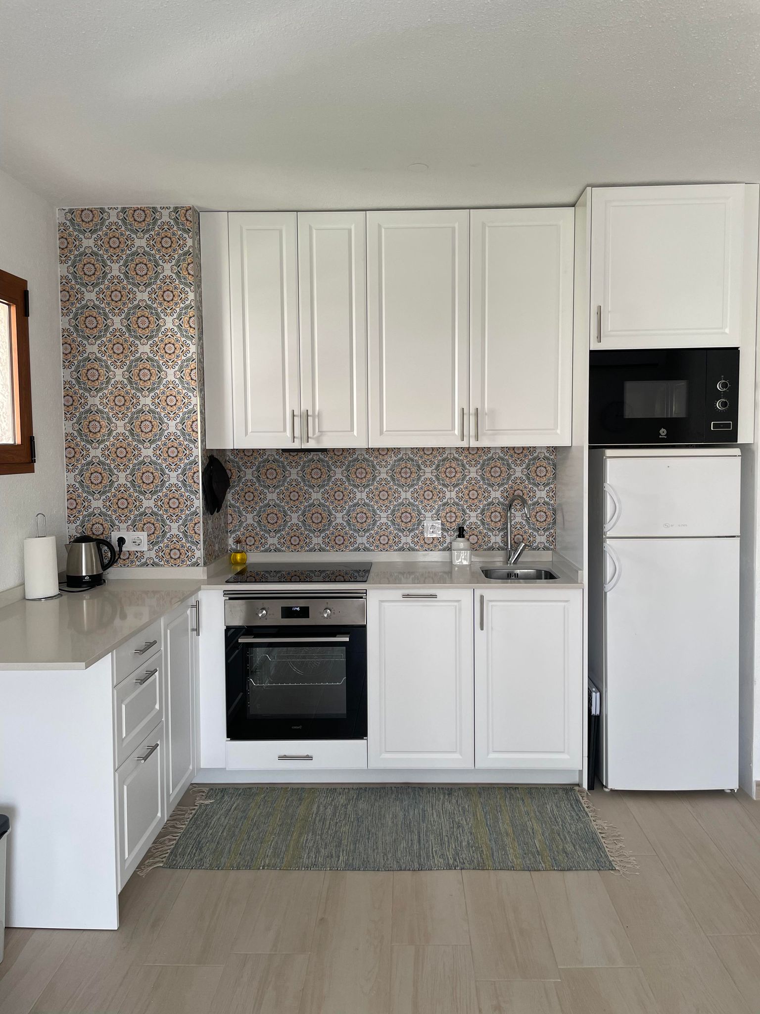 The spacious balcony is the perfect spot for soaking up the Spanish sun or relaxing in the shade under the new awnings in our comfortable lounge chairs. This apartment offers a local blend of modern and old Spanish architecture and feeling.
