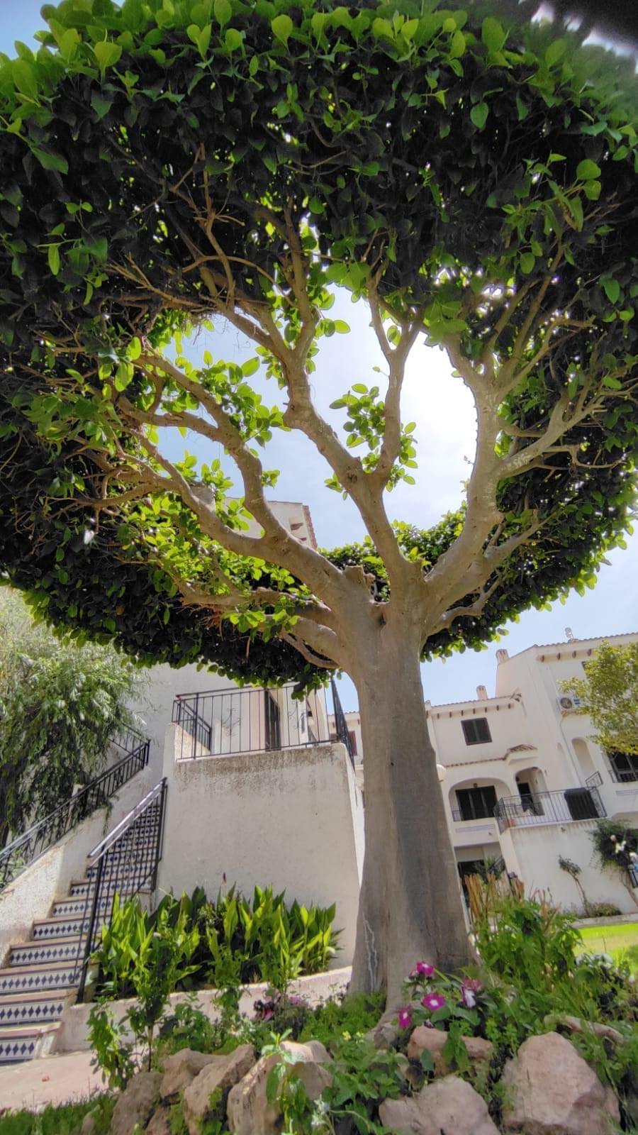 Our apartment is bright and newly renovated. It boasts a stunning view of the pool area from two floors up at the top and over natural our garden with real grass.